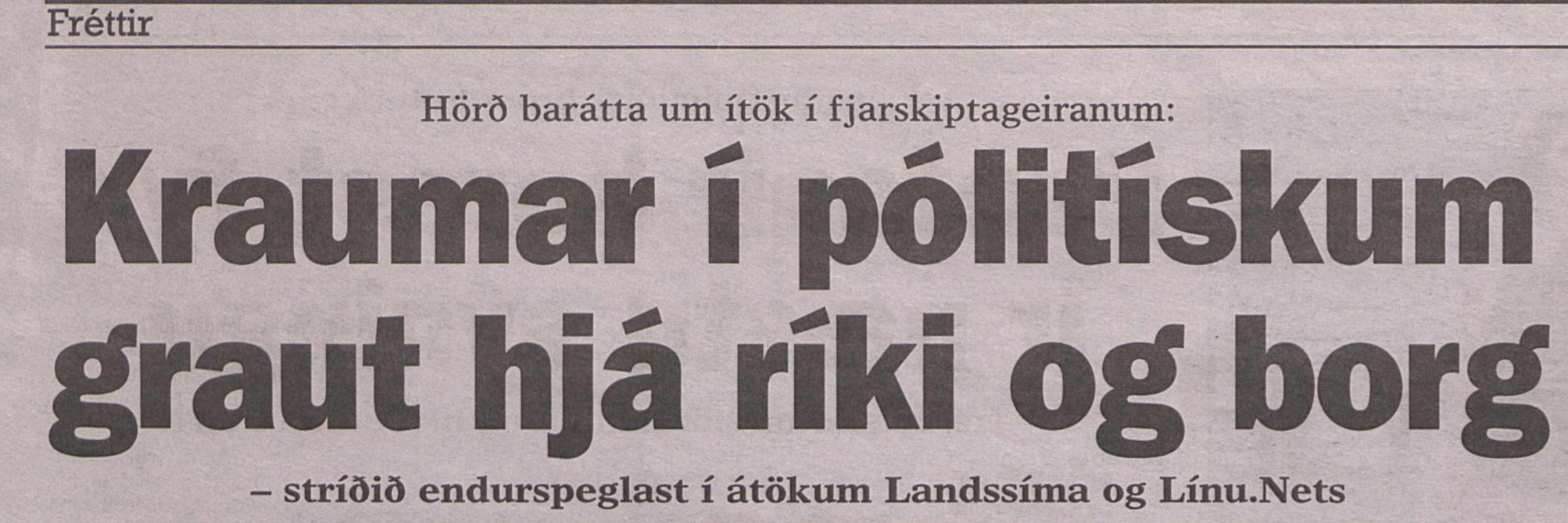 Landsíminn, sem þá var ríkjandi afl á markaðnum og í eigu ríkisins, hafði fram að þessu byggt viðskiptamódel sitt á koparlínum og gjaldtöku sem var tengd notkun. Þegar Reykjavíkurborg ákvað að velja ljósleiðaratækni Línu.Net, hófst hörð pólitísk barátta milli ríkisins og borgarinnar. Landsíminn hélt fast í koparkerfið og mótmælti samningnum kröftuglega, sem meðal annars leiddi til kvartana og úrskurða hjá Samkeppnisráði. Þessi barátta komst í fréttirnar og var lýst á sínum tíma sem pólitískum „graut“ milli ríkis og borgar.